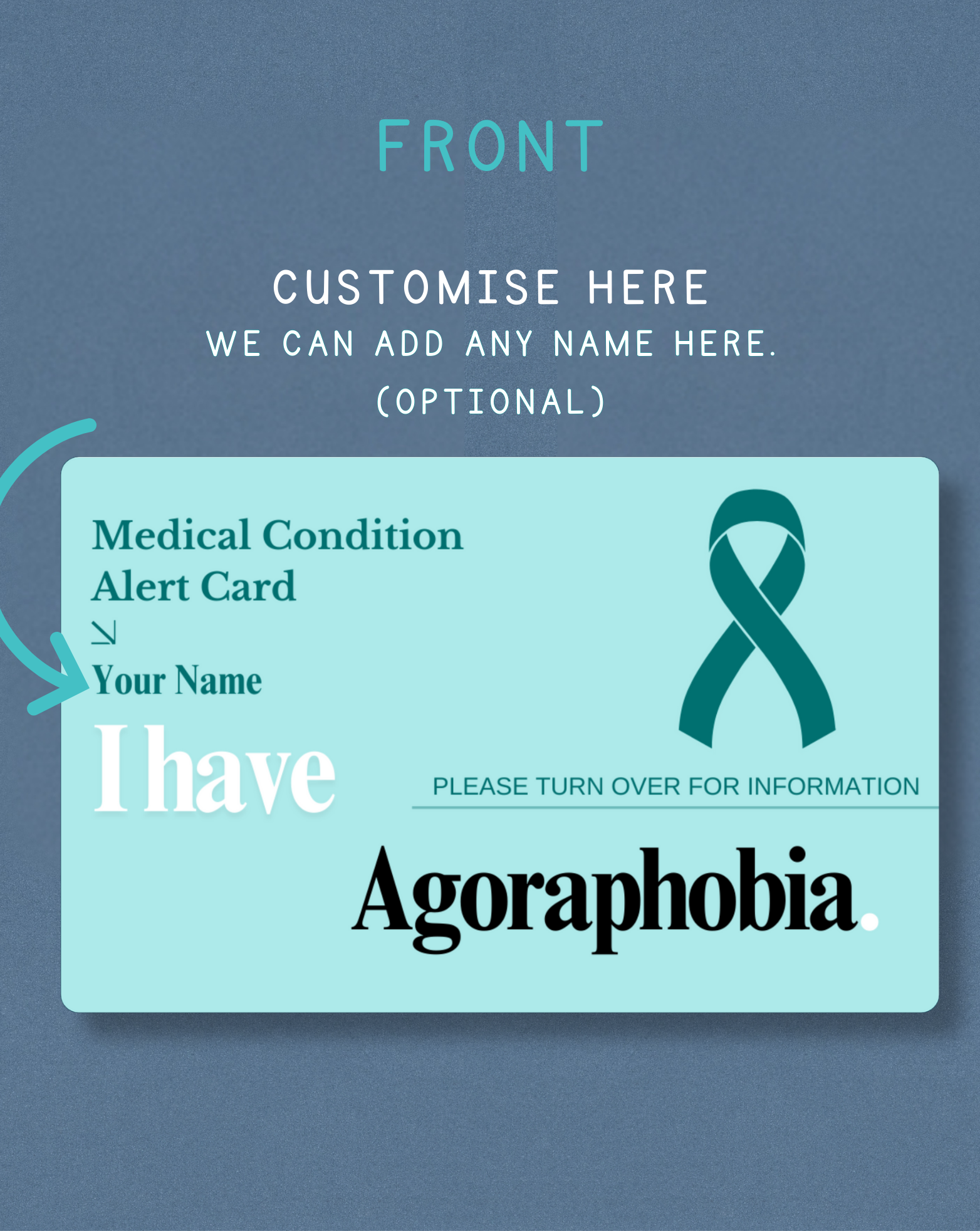 Back: A short explanation of your condition, what to do, and two emergency contact numbers
