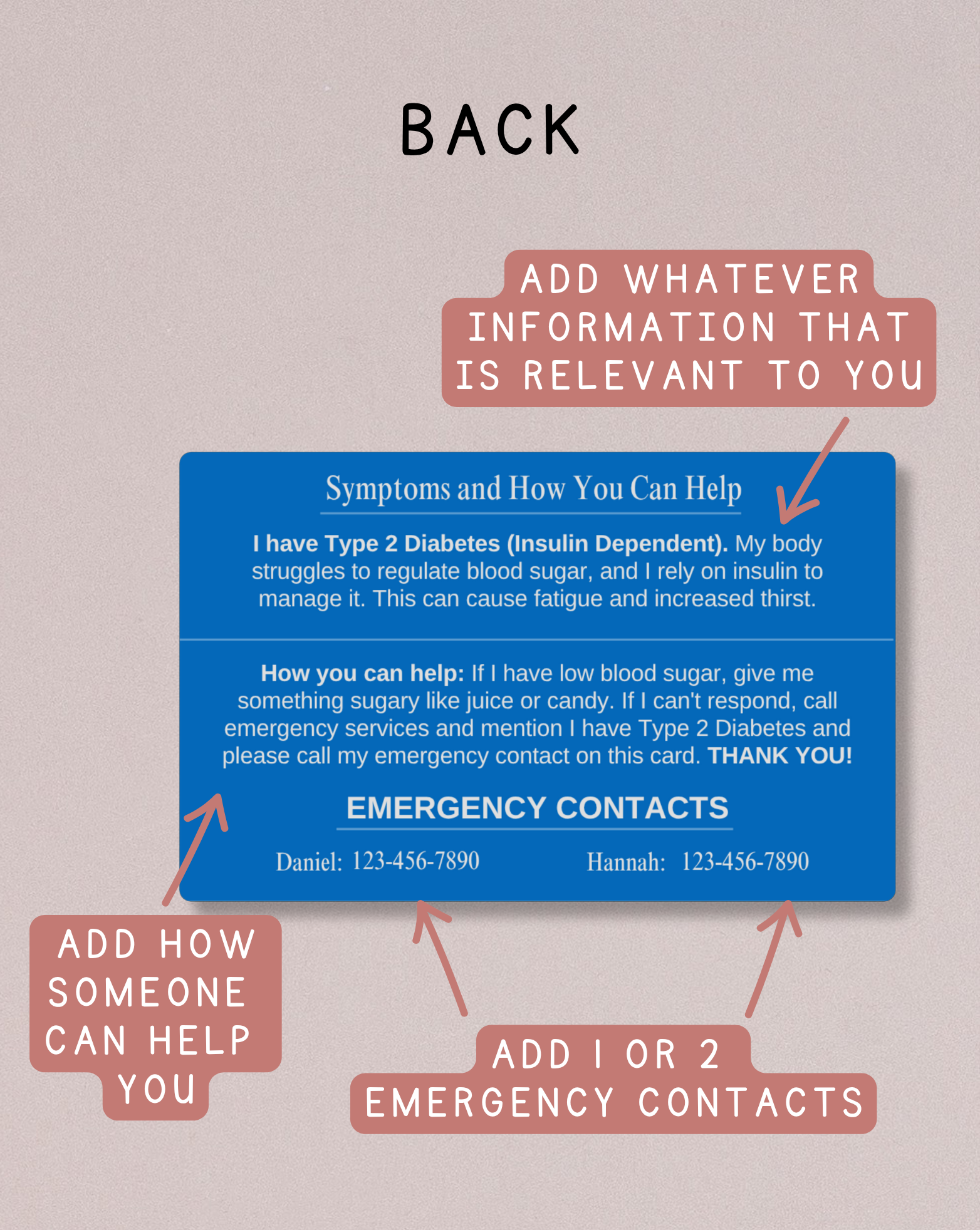 This personalised Medical Condition Alert Card is laser engraved on sleek aluminum and made to clearly communicate your medical condition in an emergency. Designed to fit in your wallet or purse, it includes everything someone needs to help you when you can't speak for yourself.
