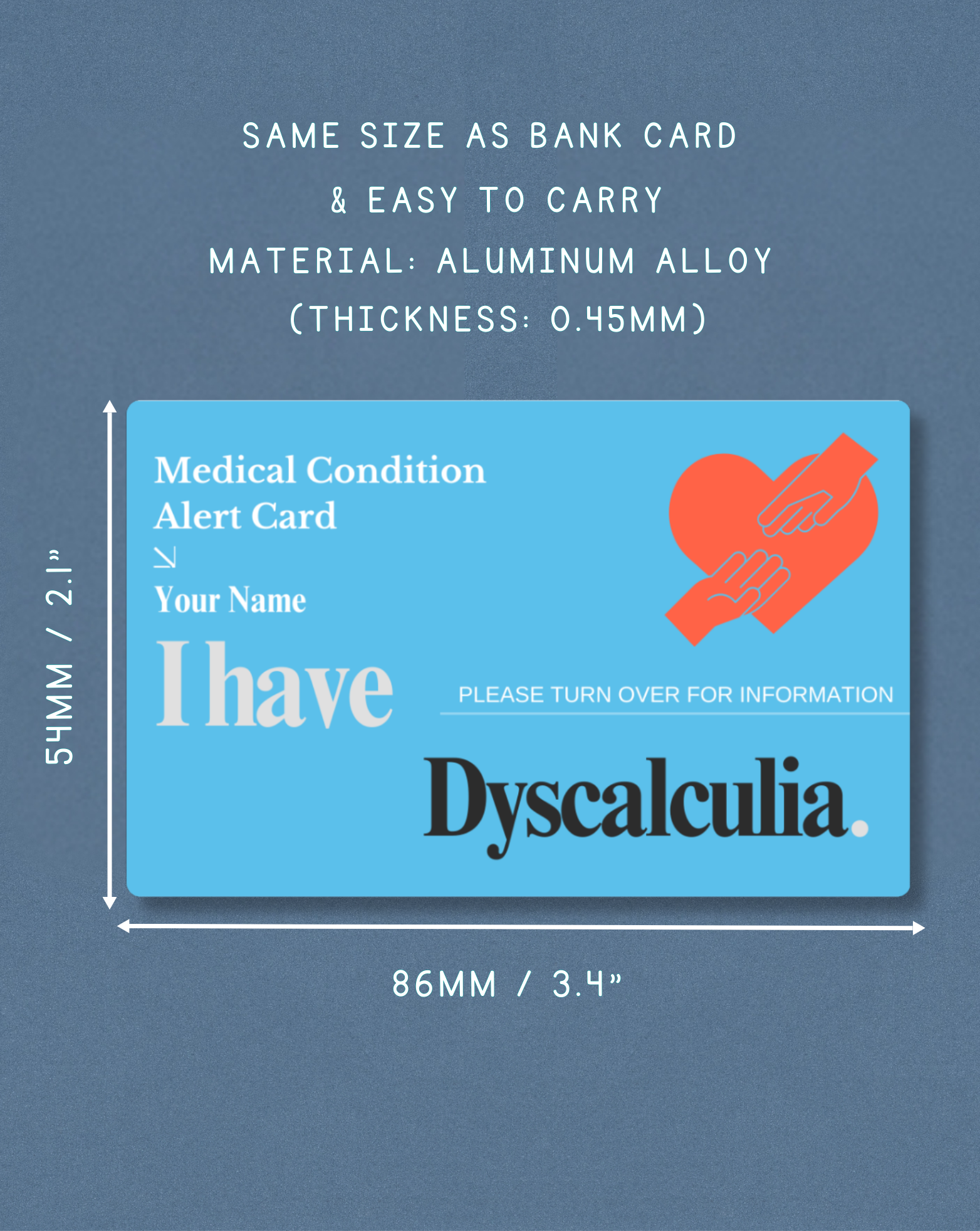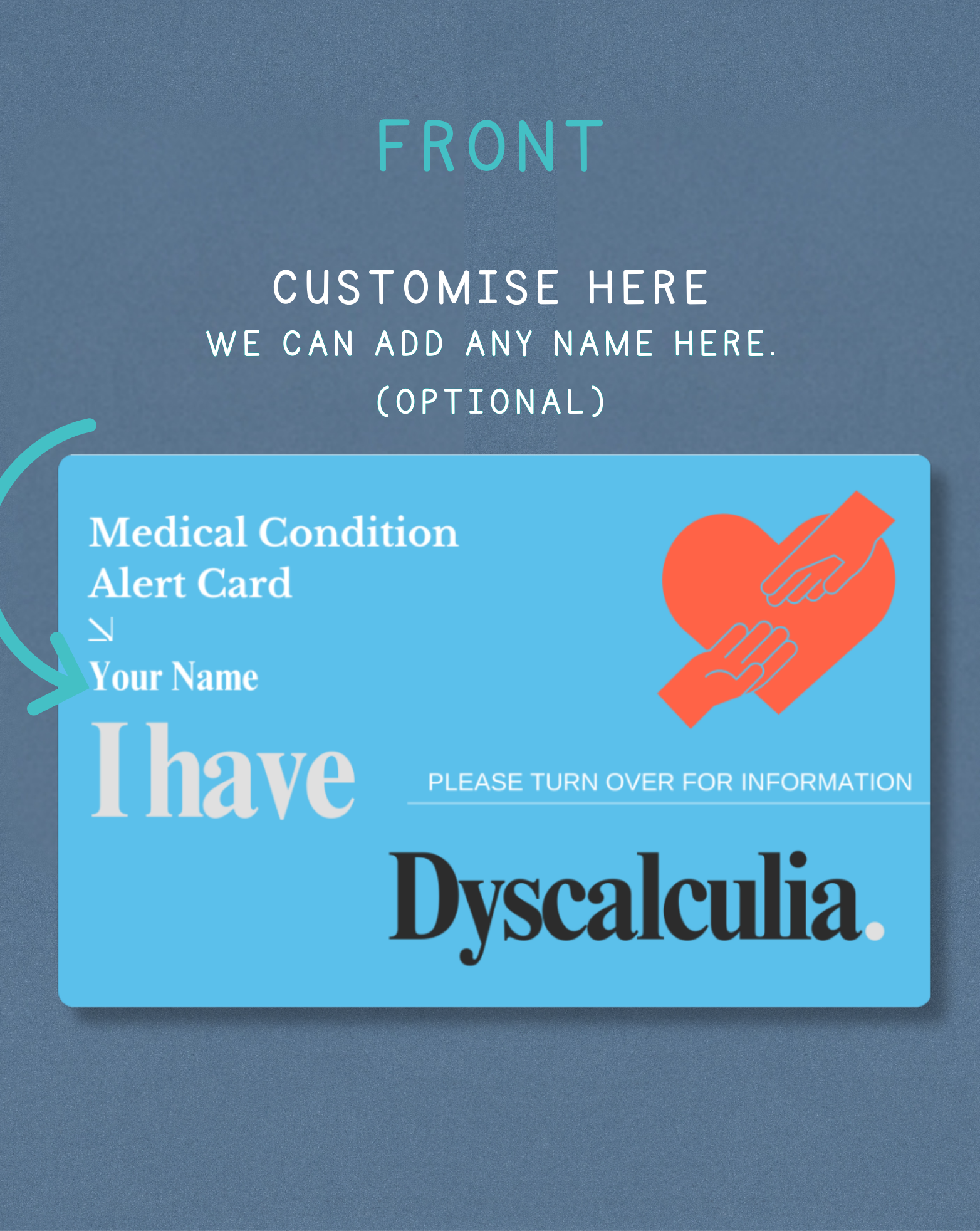 Back: A short explanation of your condition, what to do, and two emergency contact numbers
