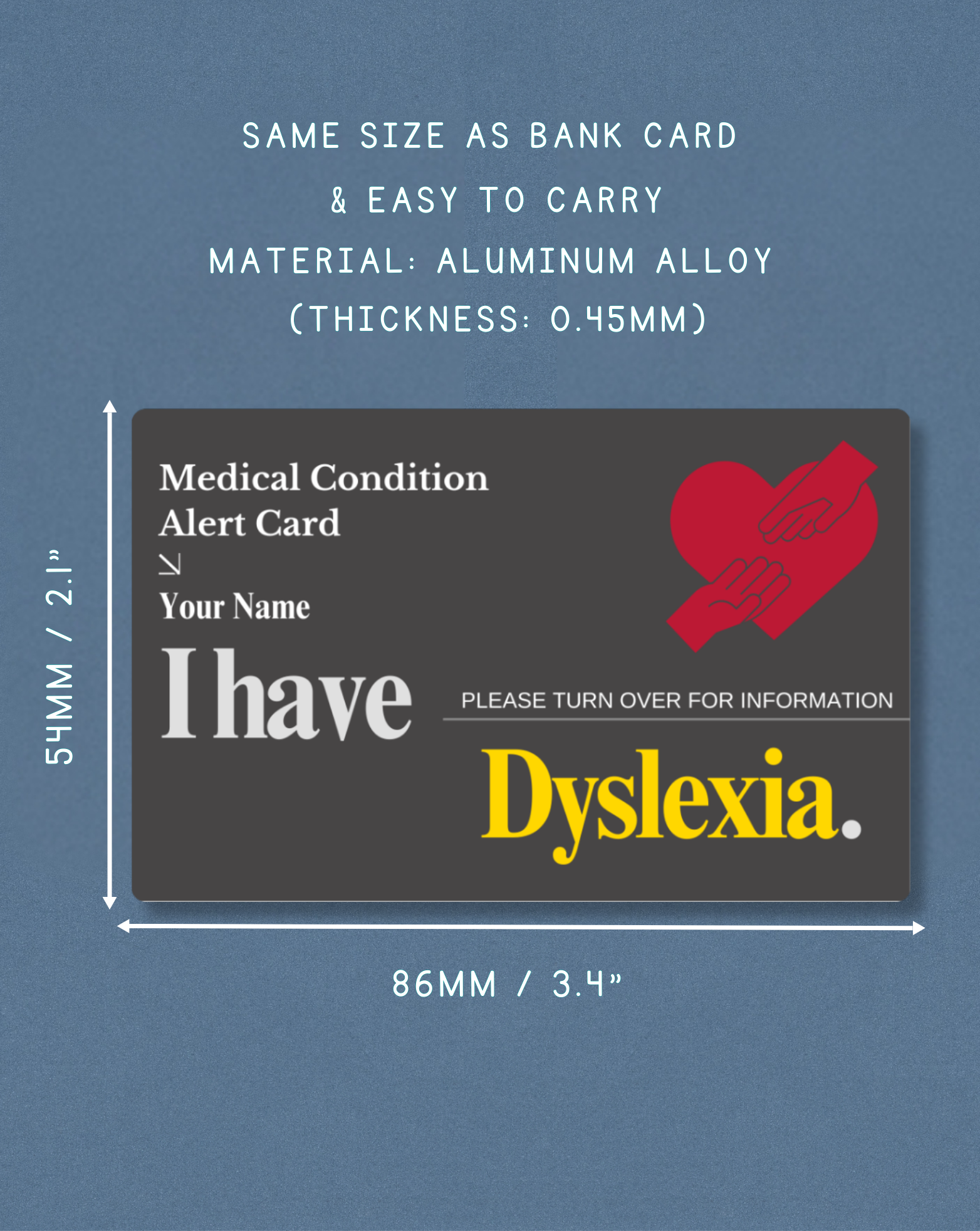 Back: A short explanation of your condition, what to do, and two emergency contact numbers