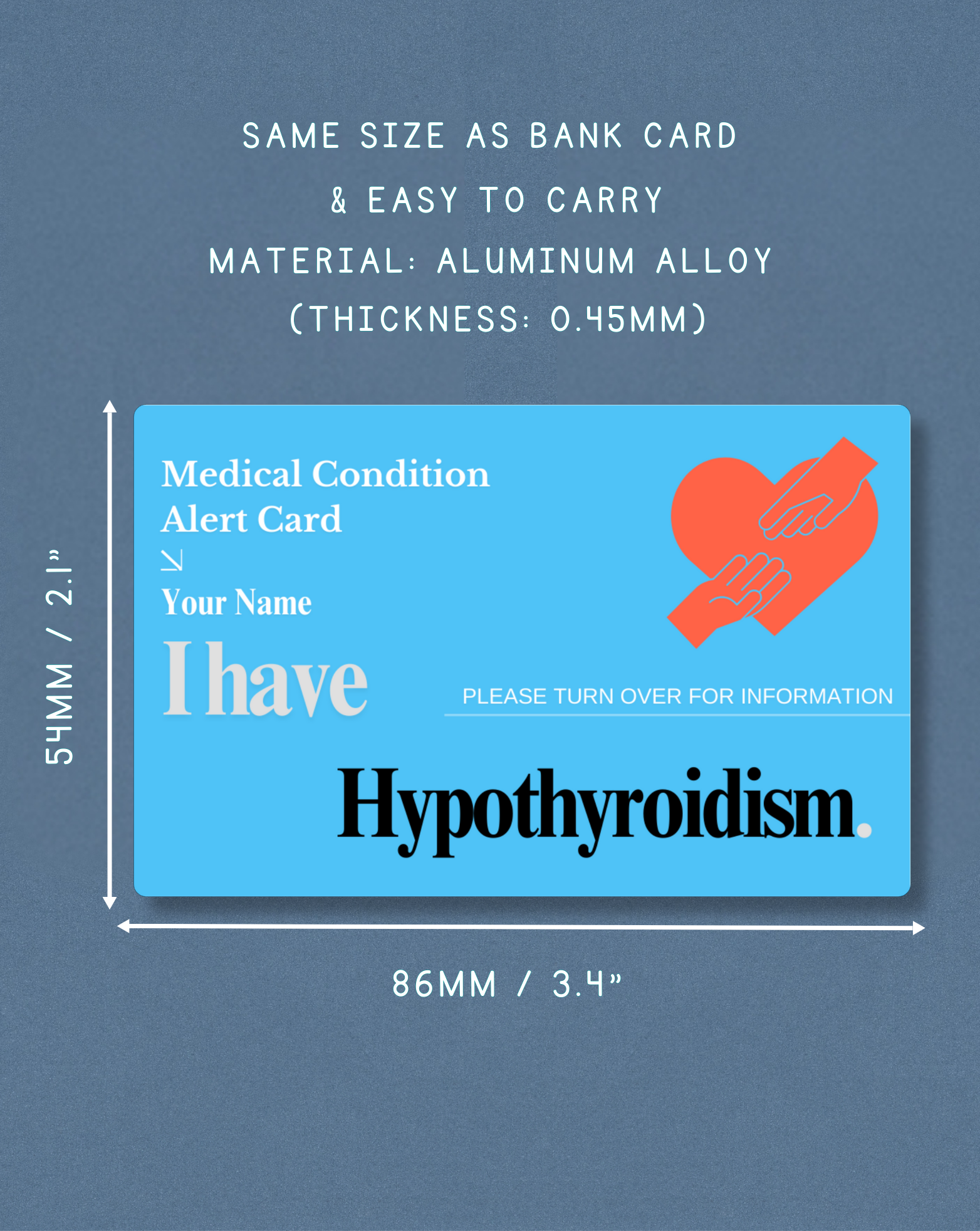 Back: A short explanation of your condition, what to do, and two emergency contact numbers