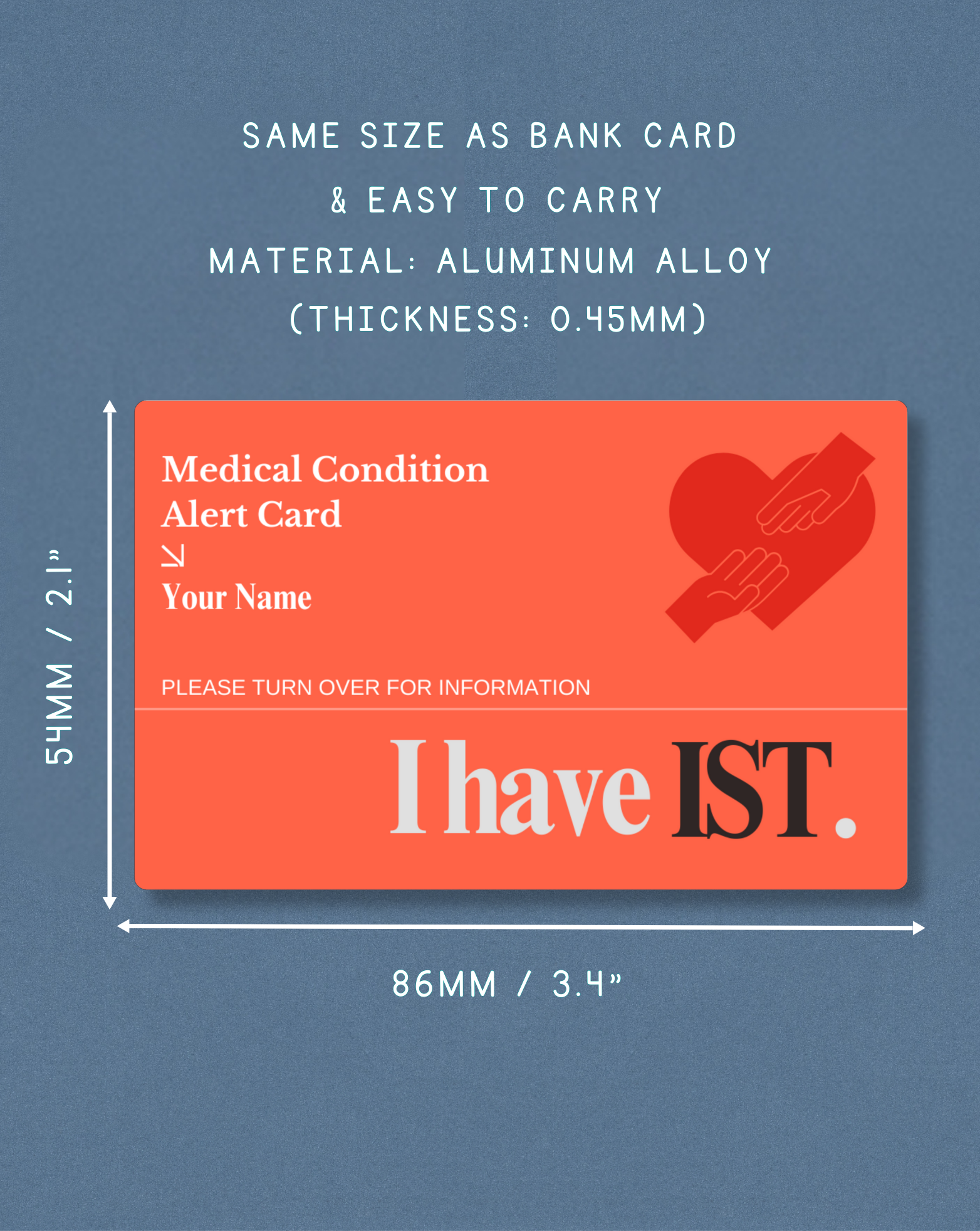 Back: A short explanation of your condition, what to do, and two emergency contact numbers