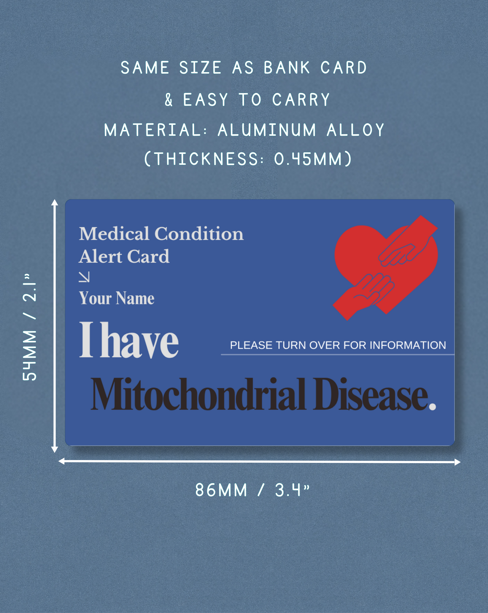 Back: A short explanation of your condition, what to do, and two emergency contact numbers