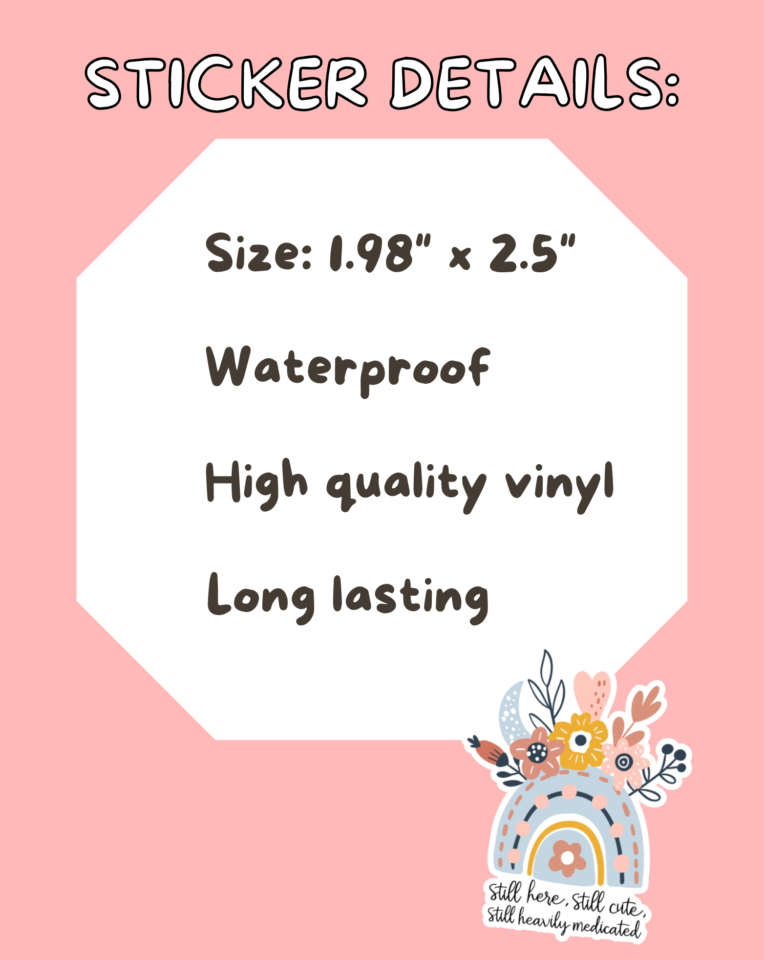 These stickers are a mix of fun, safety, and personality! Whether you're spreading awareness about a medical condition or just adding a little humour to your day, these quirky vinyl stickers are perfect for decorating your kindle, laptop, tablet, stanley cup, water bottle, phone cover, lunch box, notebook, or bullet journal.